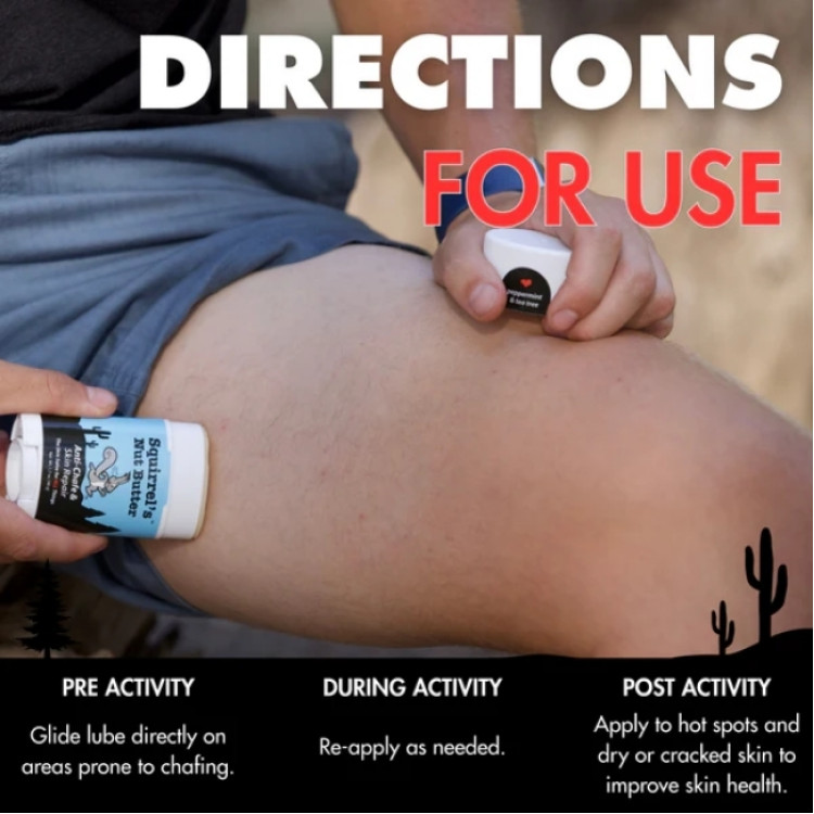 Directions To prevent chafing and blisters, apply SNB to your underarms, inner thighs, crotch, nipples or feet, or under your bra or pack straps before activity. Re-apply as needed. The stick is best used in cooler temperatures below 70℉.