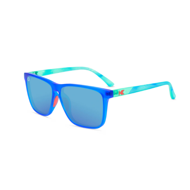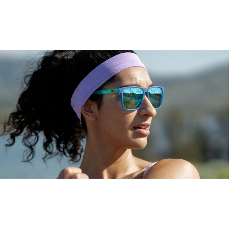 Finish strong at the front of the pack with our Hill Charge Fast Lanes Sport shades! Chic green arms feature fluid dot-pattern graphics, while standard red hot ‘K’ detailing matches the embedded rubber nose pads that’ll keep your sport sunglasses in place for every moment. Regal blue frames along with polarized aqua lenses give a minty fresh edge when you’re working your hardest, along with UV400 protection and impact resistance for insurance at all times. Slow and steady wins the race, but looking good for your victory is important too.
