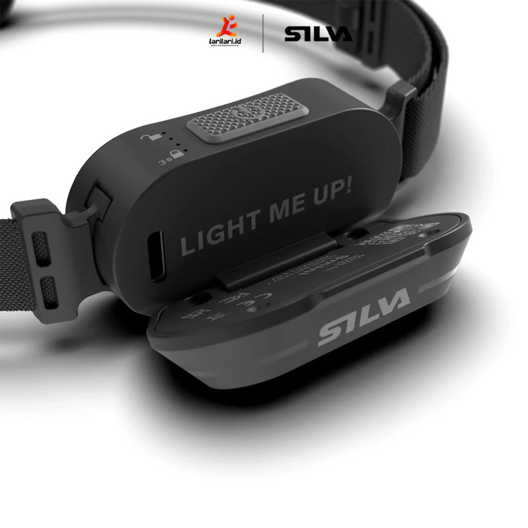 Smini comes with a slim and comfortable 15 mm headband, but the lamp head can also be used with the 3 mm headband, sold separately. The rechargeable battery is placed behind the lamp, ensuring it stays tight against the forehead and has optimal weight balance. The lamp is also tiltable at 90 degrees to avoid dazzling people you meet when running.