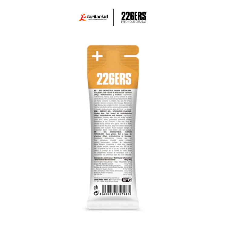 Energy gel formulated with maltodextrin and fructose, in proportion 10: 8, with a contribution of 55g carbohydrates per gel and 220 kcal. In addition to 250 mg of sodium. It is suitable for vegans