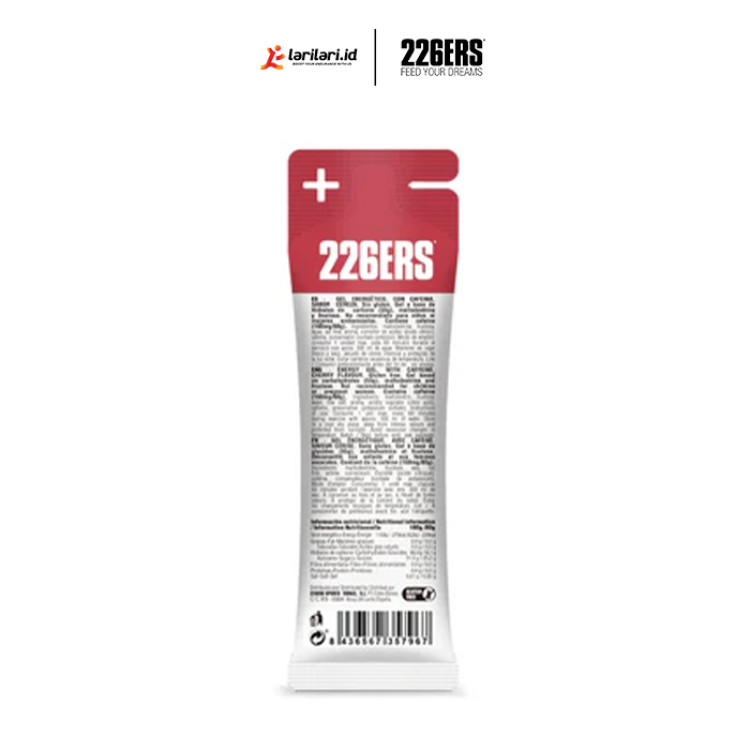Energy gel, with caffeine, cherry flavor. Gluten without. Gel based on carbohydrates (55g), maltodextrin and fructose. Not recommended for children or pregnant women. It contains caffeine (160mg/80g).