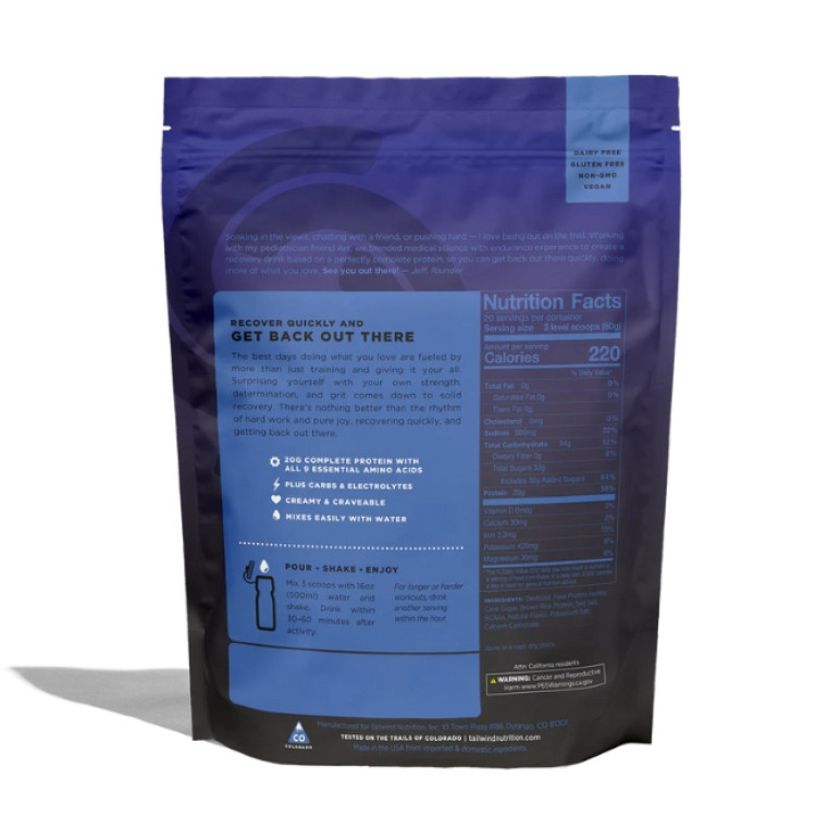 From wrecked to ready for more. Tailwind Recovery Mix jumpstarts repair with 20 grams of complete, plant-based protein, just-right carbs to restock glycogen, and hydrating electrolytes for total recovery. Simply mix with water for a smooth, milkshake-like drink that’s easy to take anywhere, no blender required. It’s delicious, dairy-free, and built with the most efficient protein on the market, so your muscles get exactly what they need after every effort.